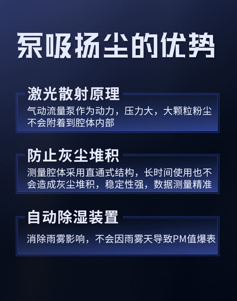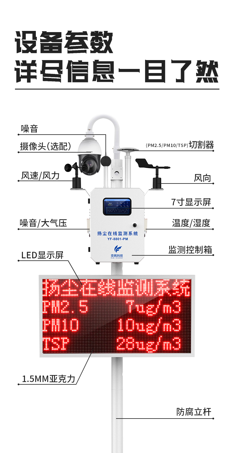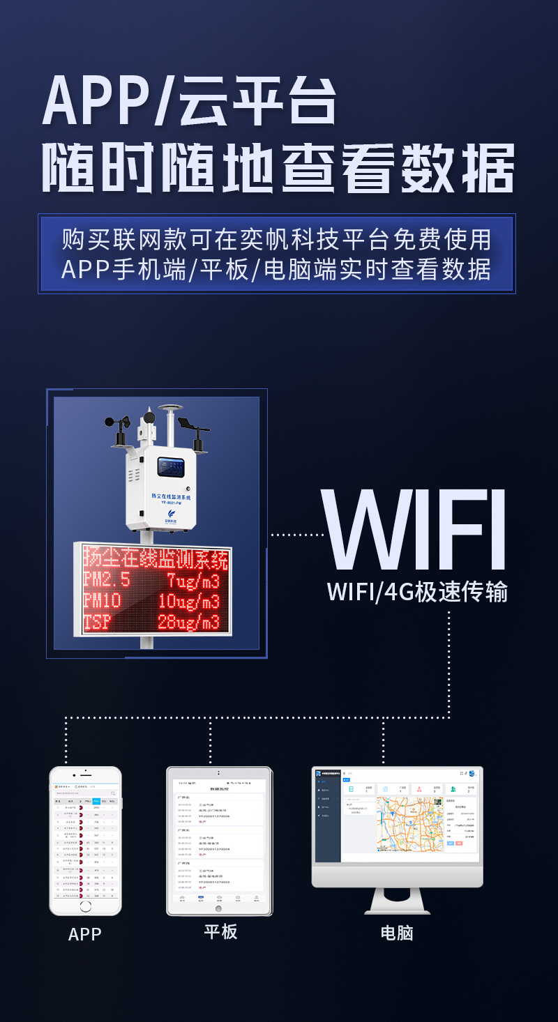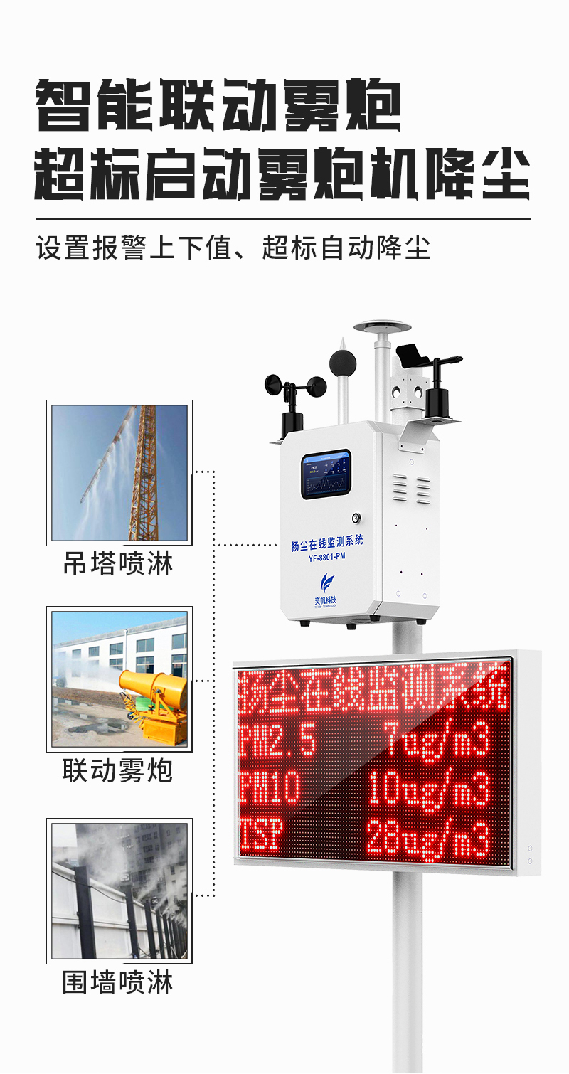 YF-8801-PM奕帆科技泵吸款揚(yáng)塵在線監(jiān)測(cè)系統(tǒng)采用高精度激光傳感器,恒溫控制裝置,可以不受環(huán)境中水分子的影響。該設(shè)備以氣動(dòng)流量泵作為動(dòng)力,大顆粒粉塵不會(huì)附著到腔體內(nèi)部,并且測(cè)量腔體采用直通式結(jié)構(gòu),長(zhǎng)時(shí)間使用也不會(huì)造成灰塵堆積,數(shù)據(jù)一致性好。另外還帶有自動(dòng)除濕裝置,消除雨霧影響,不會(huì)出現(xiàn)雨霧天粉塵值爆表的問題。可在app和云平臺(tái)查看實(shí)時(shí)數(shù)據(jù)、歷史數(shù)據(jù)、導(dǎo)出數(shù)據(jù)等,同時(shí)具備24小時(shí)連續(xù)監(jiān)測(cè)、超標(biāo)報(bào)警、數(shù)據(jù)存儲(chǔ)功能產(chǎn)品已獲得CCEP中國(guó)環(huán)境環(huán)保協(xié)會(huì)認(rèn)證、CMA檢測(cè)報(bào)告、CPA認(rèn)證、計(jì)量校準(zhǔn)報(bào)告證書。