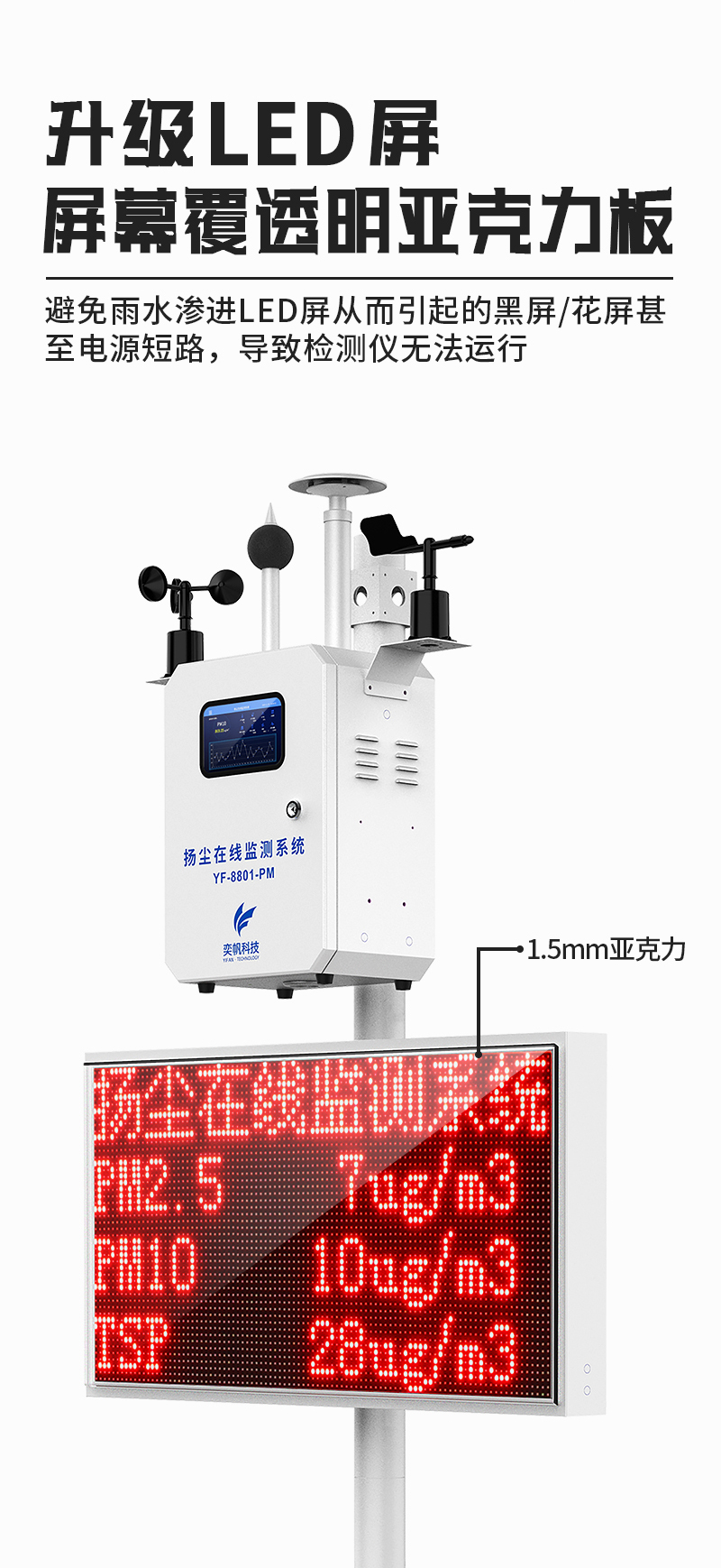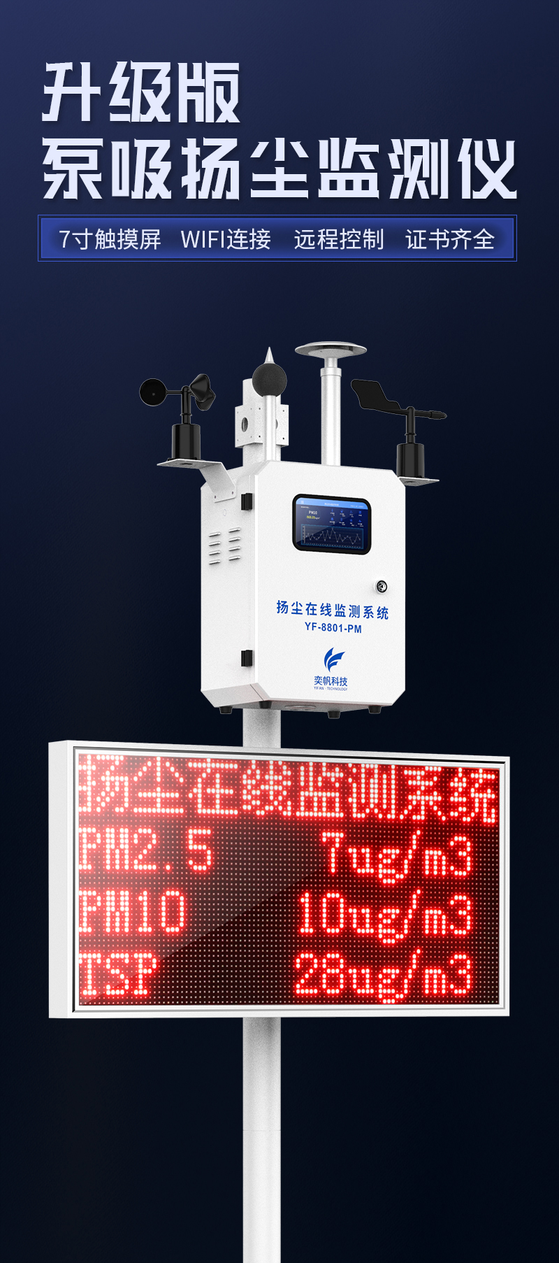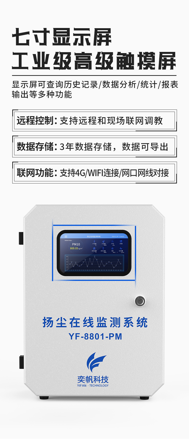 YF-8801-PM奕帆科技泵吸款揚(yáng)塵在線監(jiān)測(cè)系統(tǒng)采用高精度激光傳感器,恒溫控制裝置,可以不受環(huán)境中水分子的影響。該設(shè)備以氣動(dòng)流量泵作為動(dòng)力,大顆粒粉塵不會(huì)附著到腔體內(nèi)部,并且測(cè)量腔體采用直通式結(jié)構(gòu),長(zhǎng)時(shí)間使用也不會(huì)造成灰塵堆積,數(shù)據(jù)一致性好。另外還帶有自動(dòng)除濕裝置,消除雨霧影響,不會(huì)出現(xiàn)雨霧天粉塵值爆表的問題。可在app和云平臺(tái)查看實(shí)時(shí)數(shù)據(jù)、歷史數(shù)據(jù)、導(dǎo)出數(shù)據(jù)等,同時(shí)具備24小時(shí)連續(xù)監(jiān)測(cè)、超標(biāo)報(bào)警、數(shù)據(jù)存儲(chǔ)功能產(chǎn)品已獲得CCEP中國(guó)環(huán)境環(huán)保協(xié)會(huì)認(rèn)證、CMA檢測(cè)報(bào)告、CPA認(rèn)證、計(jì)量校準(zhǔn)報(bào)告證書。