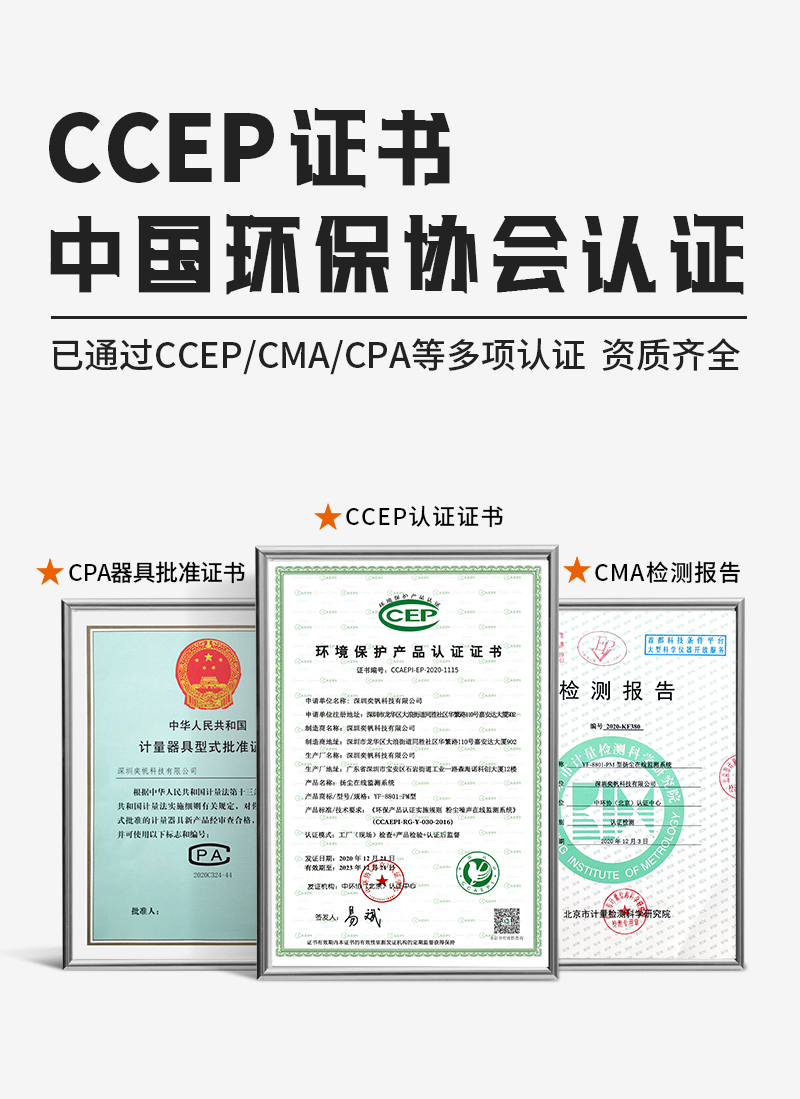 產(chǎn)品資質(zhì)齊全,有CCEP環(huán)保協(xié)會(huì)認(rèn)證、有計(jì)量院CMA檢測(cè)報(bào)告 -