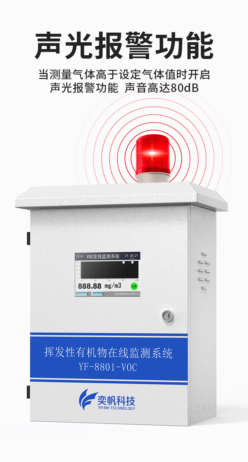 YF-8801-VOC奕帆科技TVOC在線監(jiān)測系統(tǒng),適用于連續(xù)監(jiān)測無組織環(huán)境空氣中的非甲烷總烴、苯、甲苯、二甲苯等揮發(fā)性有機物氣體。產(chǎn)品選用進口原裝(baseline)高精度PID光離子傳感器,采用泵吸式采樣監(jiān)測,內(nèi)置多重預(yù)處系統(tǒng),包括除塵冷卻除水過濾等,可以很好的保護傳感器不受侵害,保證監(jiān)測數(shù)據(jù)的準(zhǔn)確穩(wěn)定??稍赼pp和云平臺查看實時數(shù)據(jù)、歷史數(shù)據(jù)、導(dǎo)出數(shù)據(jù)等同時具備24小時連續(xù)監(jiān)測、超標(biāo)報警、數(shù)據(jù)存儲功能。產(chǎn)品已獲得CCEP中國環(huán)境環(huán)保協(xié)會認證、CMA檢測報告:軟件著作權(quán)登記證書。