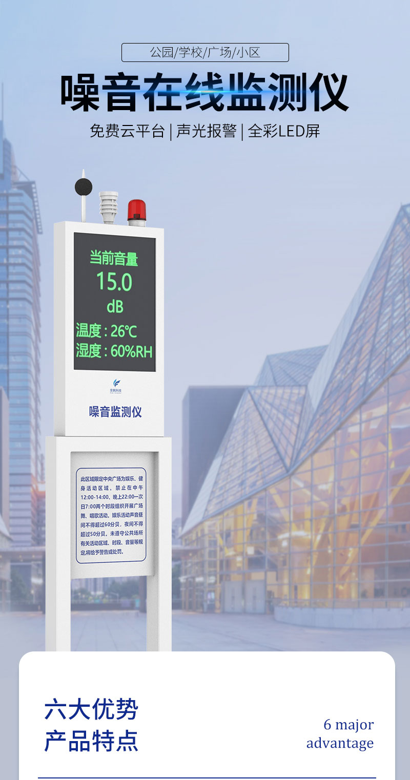 YF-8801-ZS奕帆科技噪聲在線監(jiān)測(cè)系統(tǒng),是通過(guò)物聯(lián)網(wǎng)技術(shù)與現(xiàn)場(chǎng)端儀器進(jìn)行聯(lián)互通,完成對(duì)環(huán)境噪聲數(shù)據(jù)實(shí)時(shí)采集,并對(duì)采集數(shù)據(jù)統(tǒng)計(jì)分析??赏ㄟ^(guò)LED顯示屏、手機(jī)APP/云平臺(tái)查看實(shí)時(shí)數(shù)據(jù)。噪聲計(jì)測(cè)量范圍大、功能強(qiáng)穩(wěn)定性好、可實(shí)現(xiàn)遠(yuǎn)程視頻監(jiān)控、遠(yuǎn)程廣播喊話等功能。