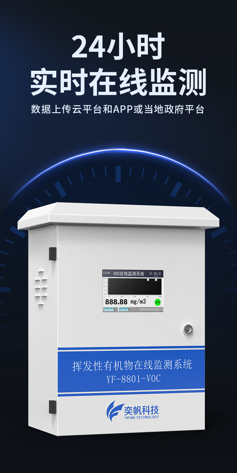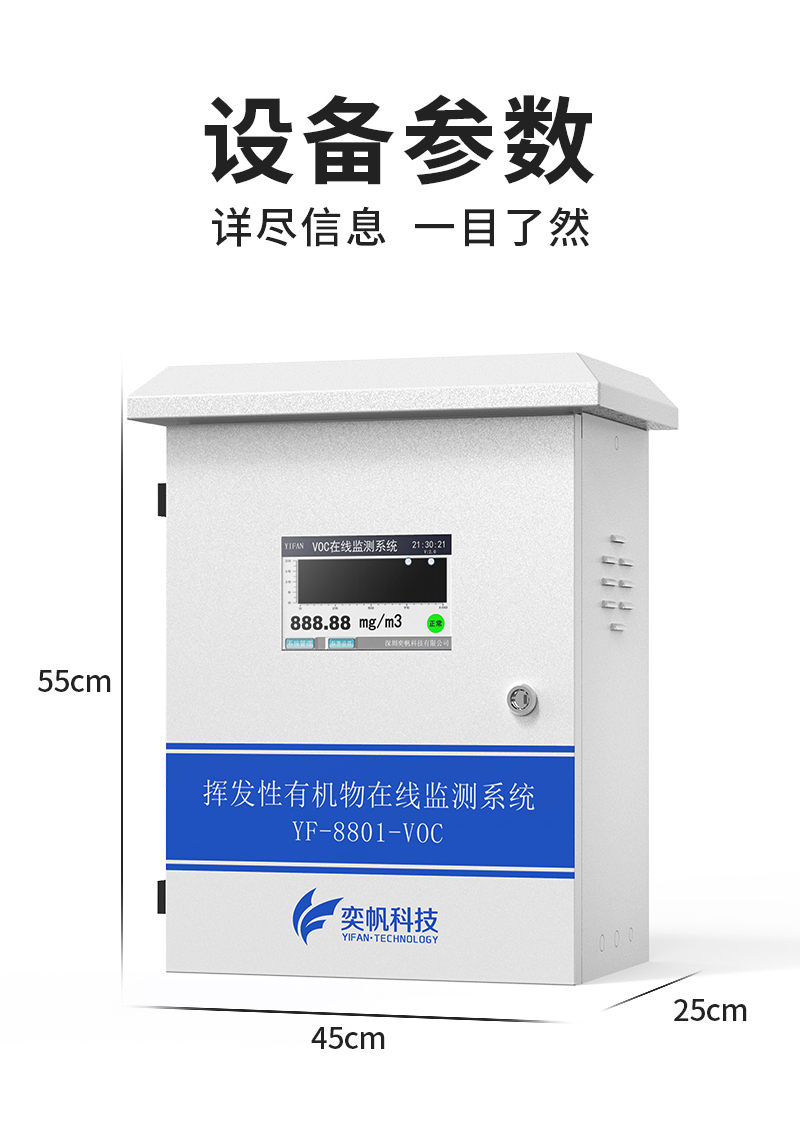 YF-8801-VOC奕帆科技TVOC在線監(jiān)測系統(tǒng),適用于連續(xù)監(jiān)測無組織環(huán)境空氣中的非甲烷總烴、苯、甲苯、二甲苯等揮發(fā)性有機物氣體。產(chǎn)品選用進口原裝(baseline)高精度PID光離子傳感器,采用泵吸式采樣監(jiān)測,內(nèi)置多重預(yù)處系統(tǒng),包括除塵冷卻除水過濾等,可以很好的保護傳感器不受侵害,保證監(jiān)測數(shù)據(jù)的準(zhǔn)確穩(wěn)定??稍赼pp和云平臺查看實時數(shù)據(jù)、歷史數(shù)據(jù)、導(dǎo)出數(shù)據(jù)等同時具備24小時連續(xù)監(jiān)測、超標(biāo)報警、數(shù)據(jù)存儲功能。產(chǎn)品已獲得CCEP中國環(huán)境環(huán)保協(xié)會認證、CMA檢測報告:軟件著作權(quán)登記證書。