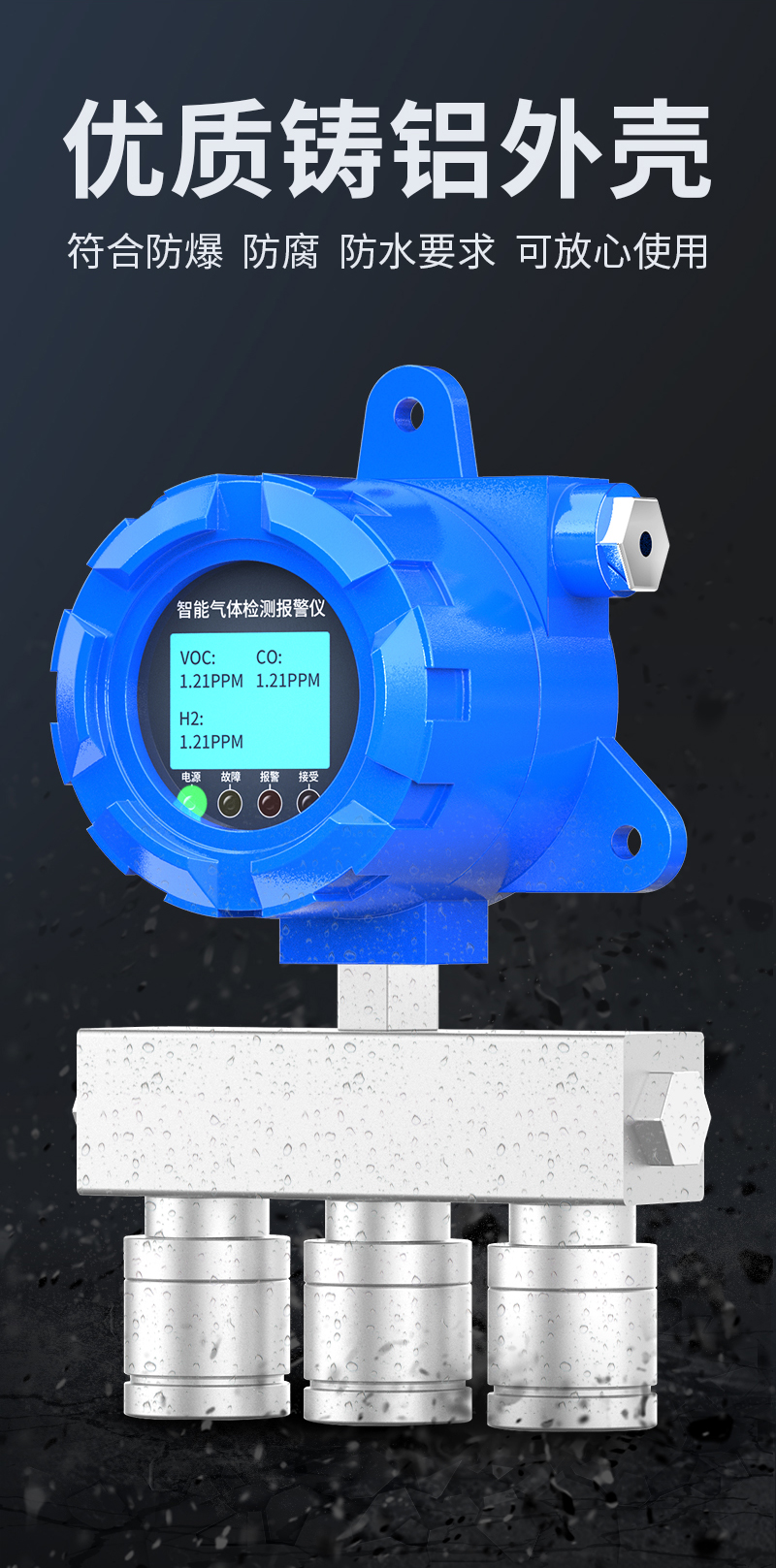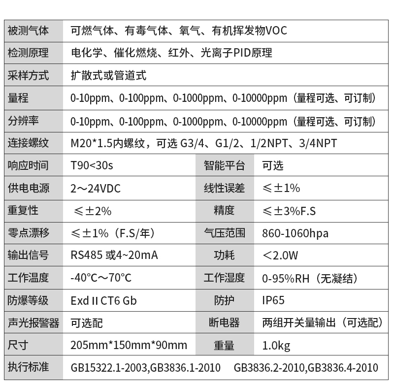 YF-8500-X3奕帆科技YF-8500-X3防爆型三合一氣體檢測(cè)儀,可同時(shí)檢測(cè)三種氣體。適用于石油化工等存在易燃易爆或有毒氣體的場(chǎng)所,可實(shí)時(shí)準(zhǔn)確檢測(cè)氣體濃度。采用進(jìn)口高精度傳感器和微控制器技術(shù),響應(yīng)速度快,測(cè)量精度高,穩(wěn)定性和重復(fù)性好等優(yōu)點(diǎn)。防爆接線方式活用于各種危險(xiǎn)場(chǎng)所,并兼容各種控制報(bào)警器,PLC,DCS等控制系統(tǒng),可以同時(shí)實(shí)現(xiàn)現(xiàn)場(chǎng)報(bào)警預(yù)警,4-20mA標(biāo)準(zhǔn)信號(hào)輸出,繼由器開關(guān)量輸出,易示各項(xiàng)技術(shù)指標(biāo)和顯示濃度值,同時(shí)具有多種極的電路保護(hù)功能,有效防止各種人為因素,不可控因素導(dǎo)致的儀器損壞。
